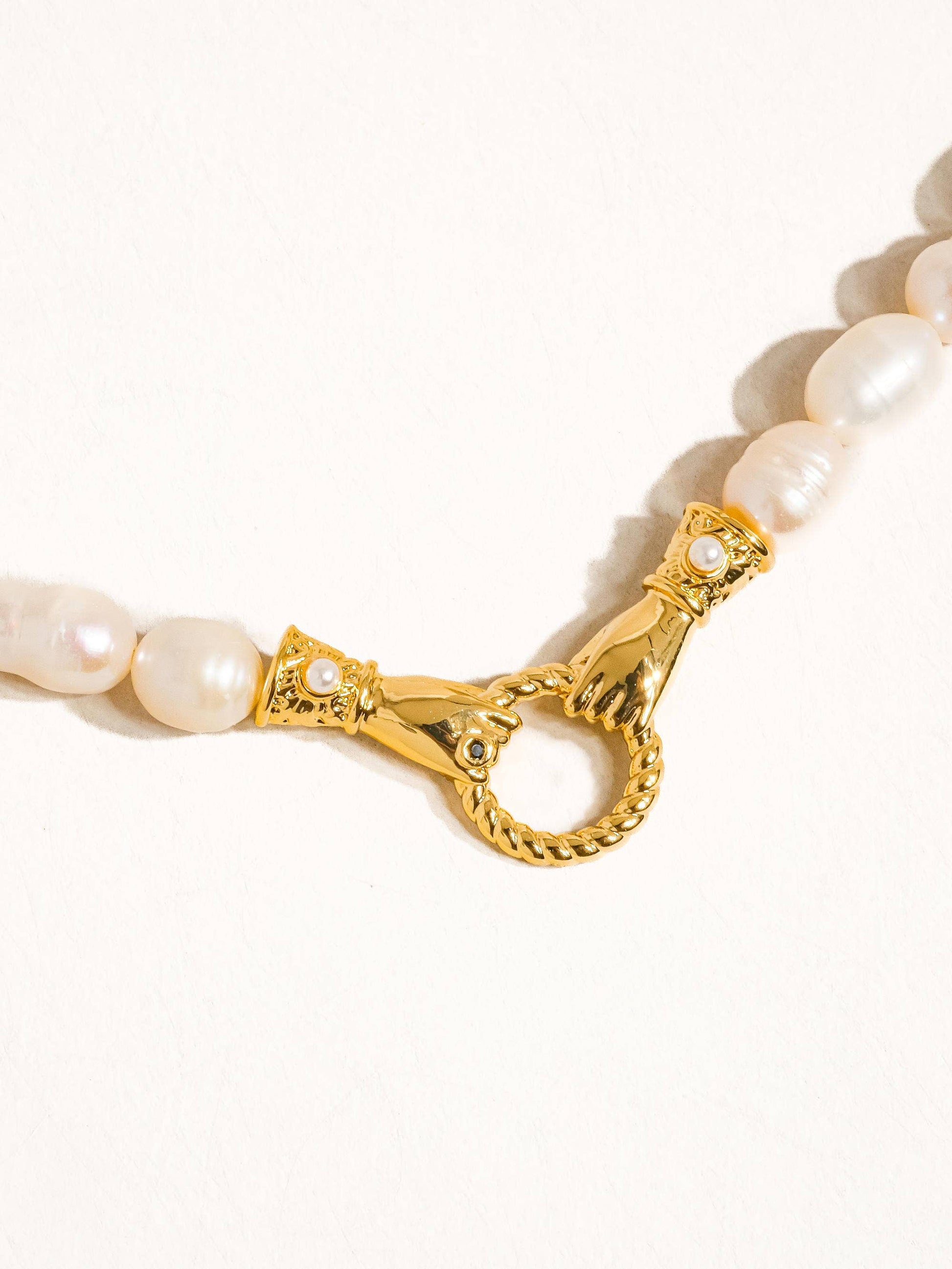 Everleigh 18K Gold Pearl Hands Hoop Necklace