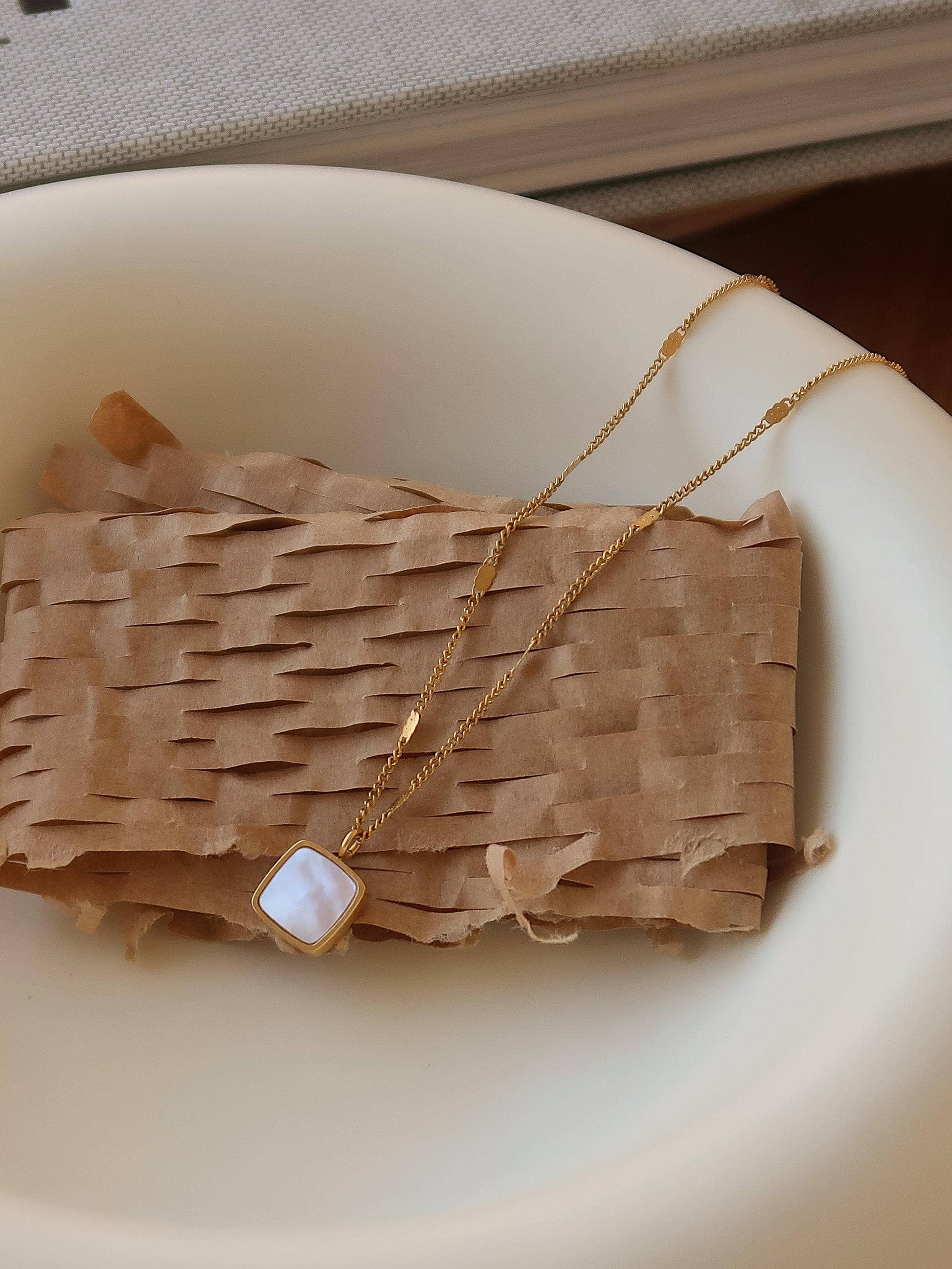 18K Gold Non-Tarnish Shell Square Necklace