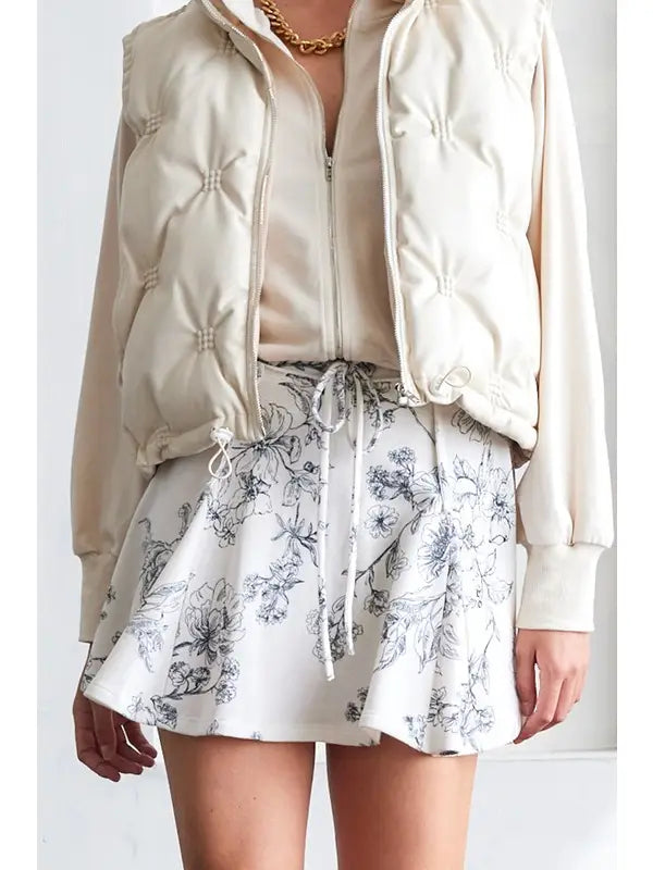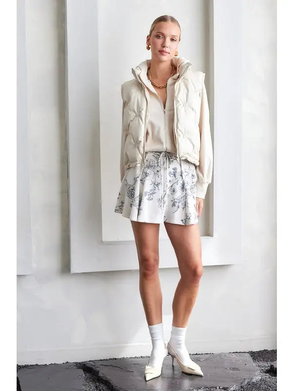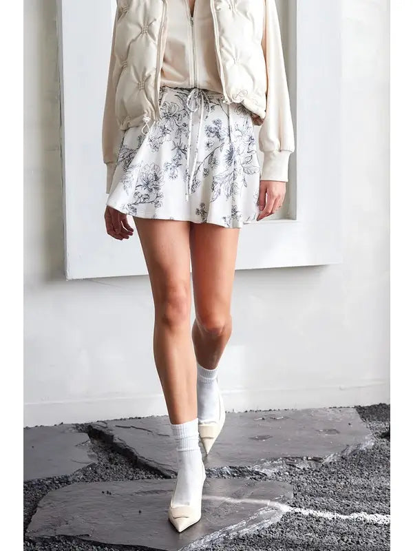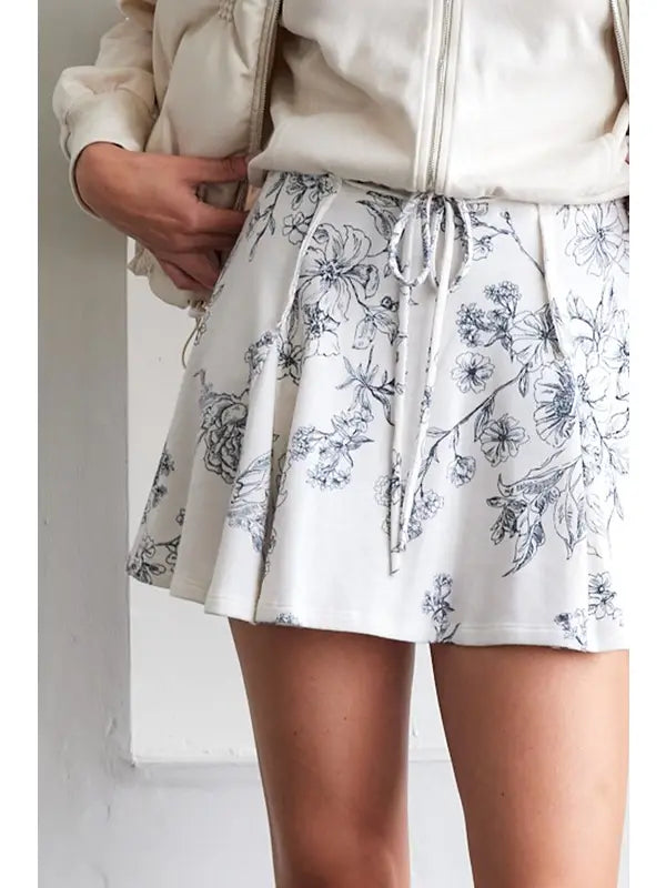 The Ivory Drift Skort brings playful charm with its printed cotton terry fabric and comfy elastic waistband, complete with a cute tie for an adjustable fit. Raw edge detailing adds a touch of casual cool, making it perfect for relaxed days when you want to feel stylish and free.