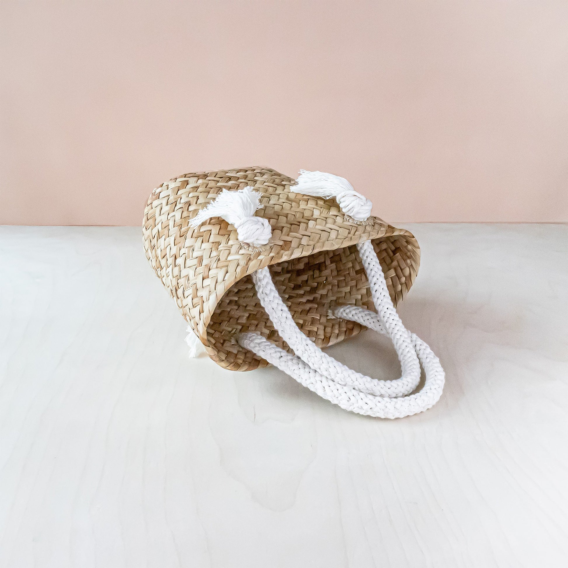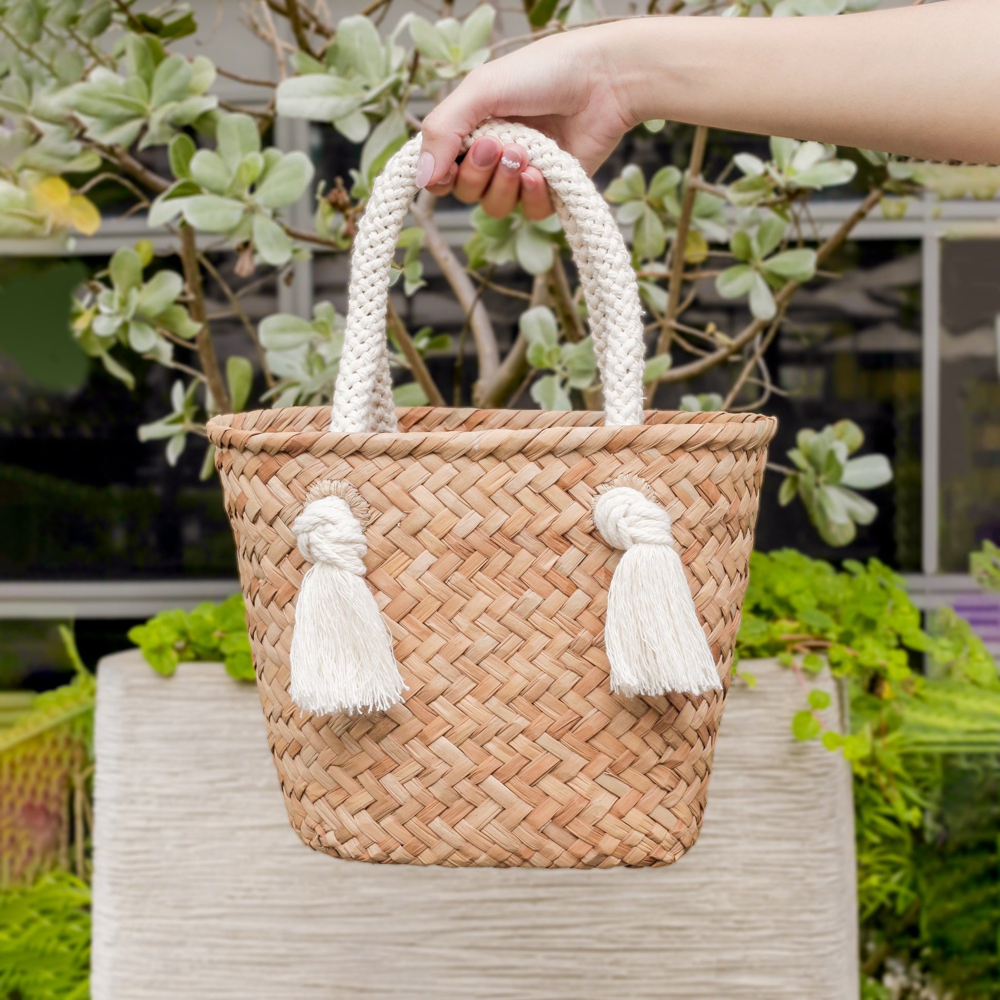 Our modern straw bag features a rich herringbone pattern with natural seagrass fiber and braided cord handles. A perfect beach accessory for your weekend getaways or a daily companion to carry your essentials. Handwoven by women weavers in the Philippines using traditional techniques.