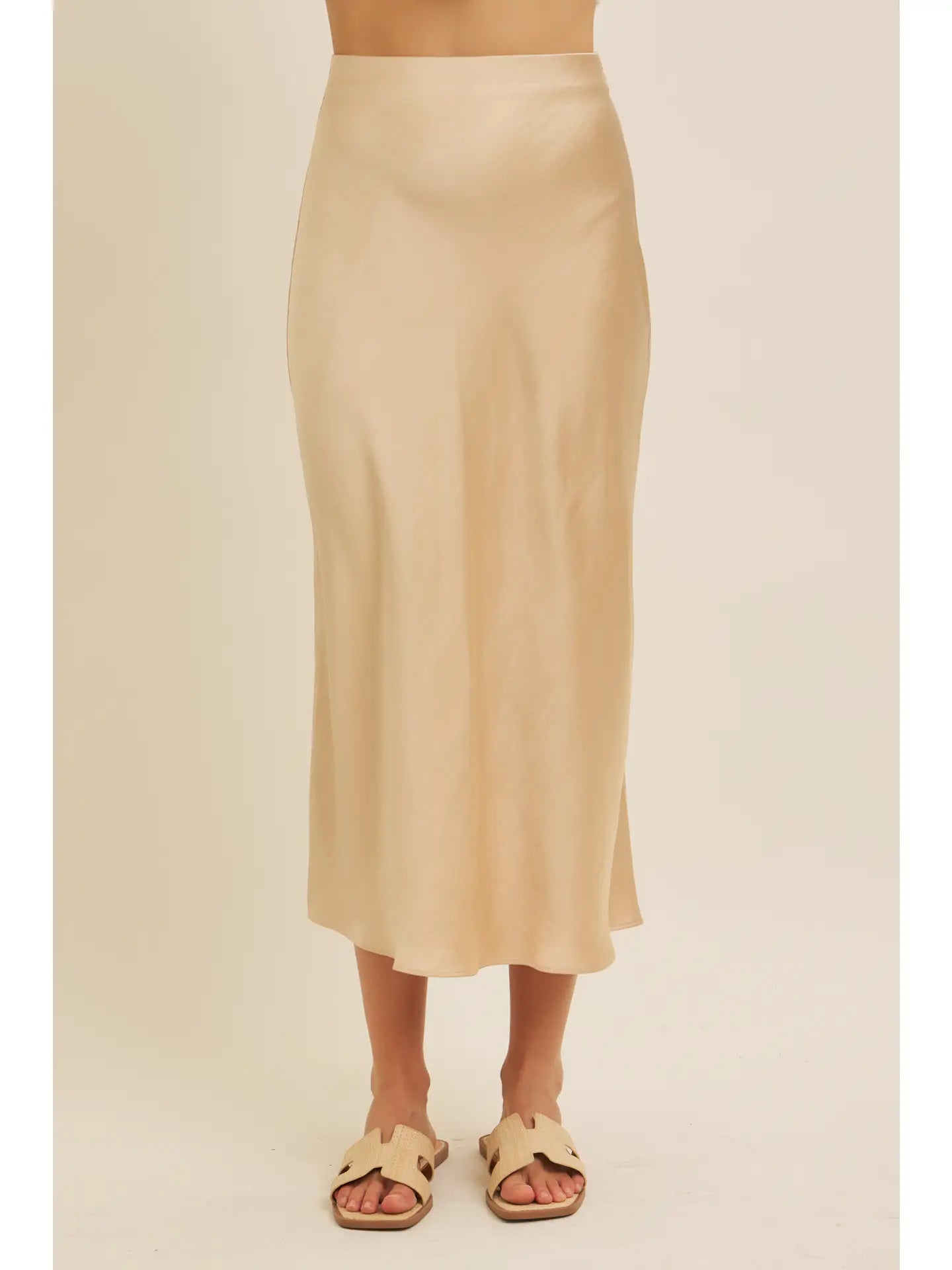 This satin maxi skirt is back and better than ever. The heavy satin drapes beautifully with a bias-cut silhouette that glides over your shape while remaining breathable and comfortable. Designed with an elastic waistband and a discreet side zip closure, it blends ease with polish. Style it casually with a tee or chunky sweater for weekend brunch, or dress it up with a silky blouse and heels for a night out. A must-have piece for layering, styling, and rewearing. - Heavy silky satin fabric - Maxi skirt - Elastic waistband - Side zipper closure - Bias cut Contents 100% POLYESTER