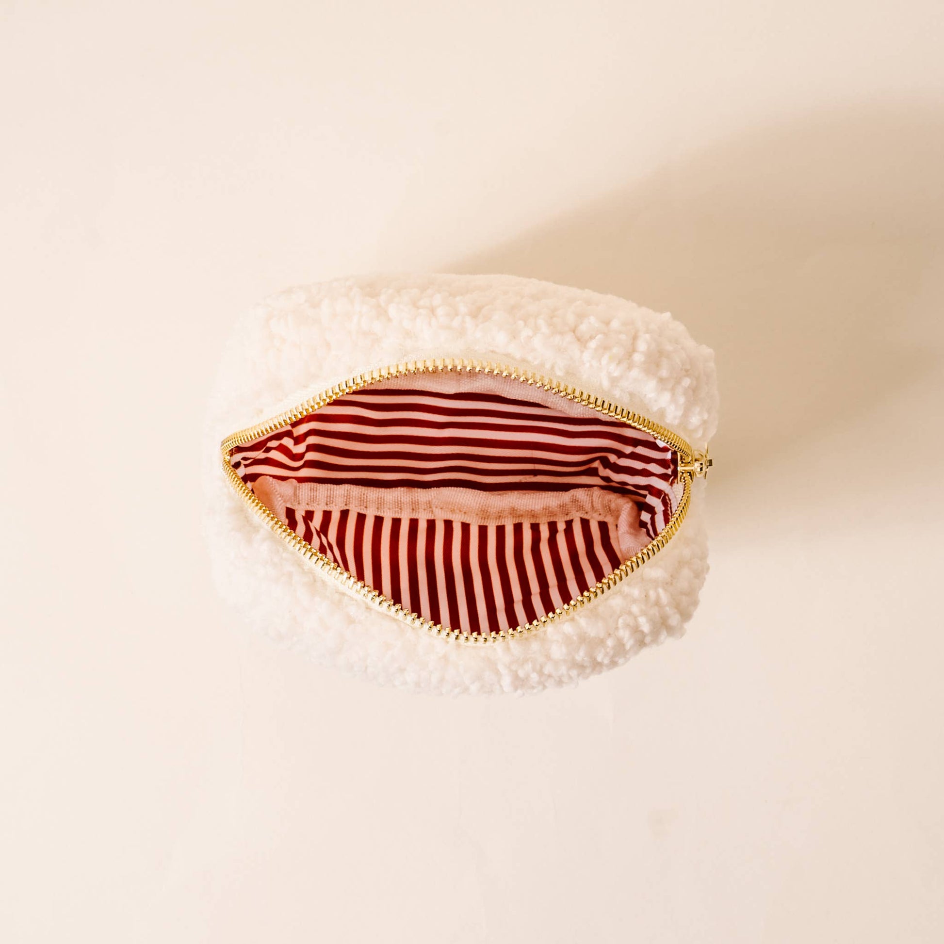 Start off pumpkin season organized with our fall-themed Teddy Pouch. Made from soft sherpa material, it features a darling, wipeable lining inside and gold zipper details. Plus, it pairs perfectly with our fall circle and rectangle teddy pouches for added convenience and seasonal style. Cozy sherpa fabric Wipeable lining Gold zipper and hardware Interior printed lining Square size: 6.5” x 2.5” x 6.5”