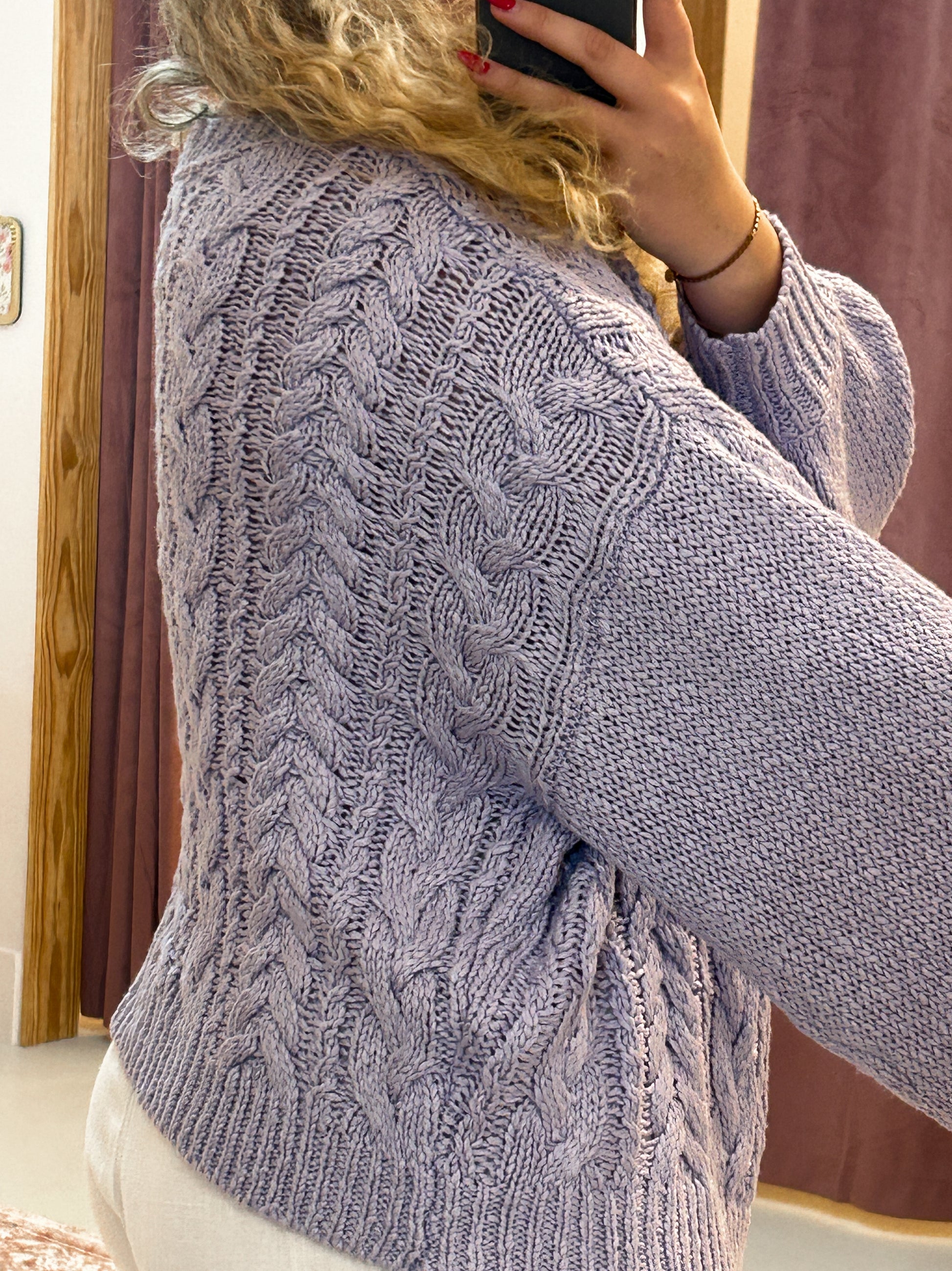 Elevate your wardrobe with our Tie-Up Cardigan, a perfect blend of comfort and style. Crafted from a soft, breathable knit, this cardigan features an intricate cable knit design that adds a touch of elegance to any outfit. The unique front tie closure allows for versatile styling options, whether you want a fitted look or a more relaxed silhouette. With its cozy long sleeves and flattering length, this cardigan is an ideal layering piece for both casual and dressed-up occasions. Available in a beautiful lavender, it's a must-have addition to your spring collection!